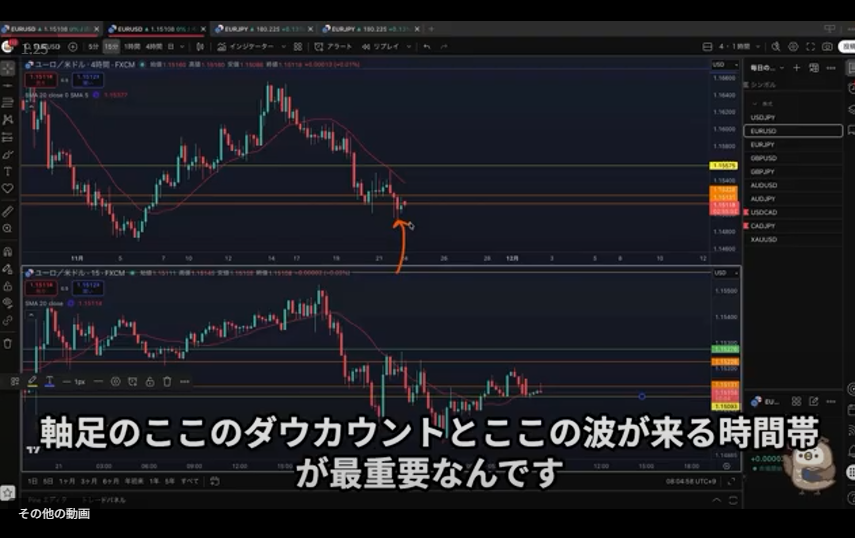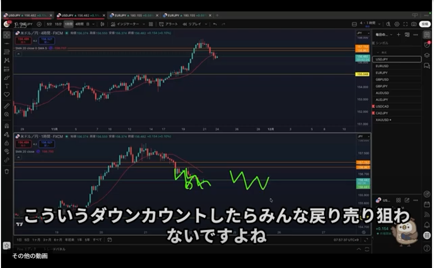 1H足でヒゲを折ってダウカウントして「ヒゲを折ったら戻り売り」という時点で主観が入っているので、それを根拠にエントリーをしないほうが良い。