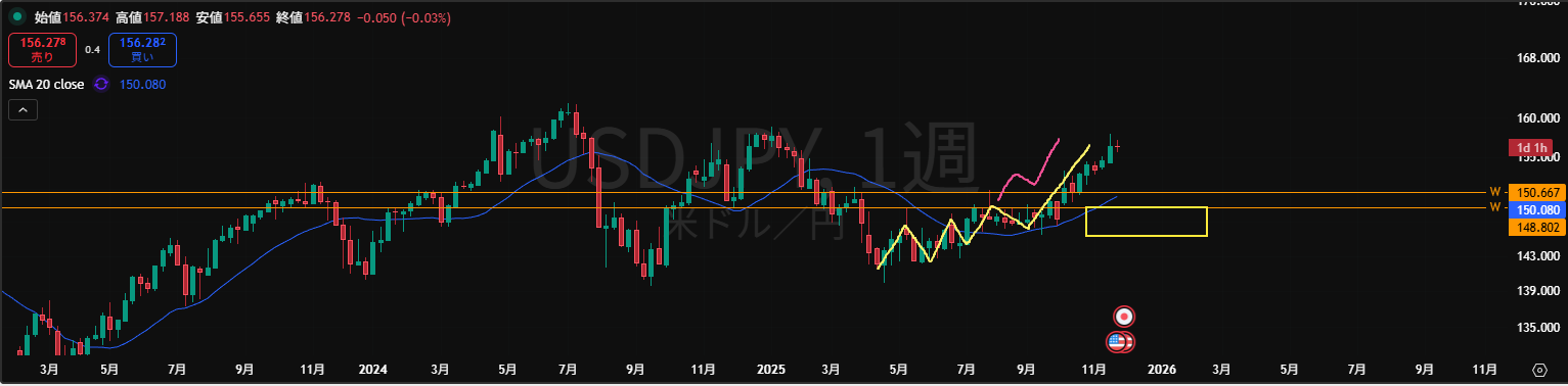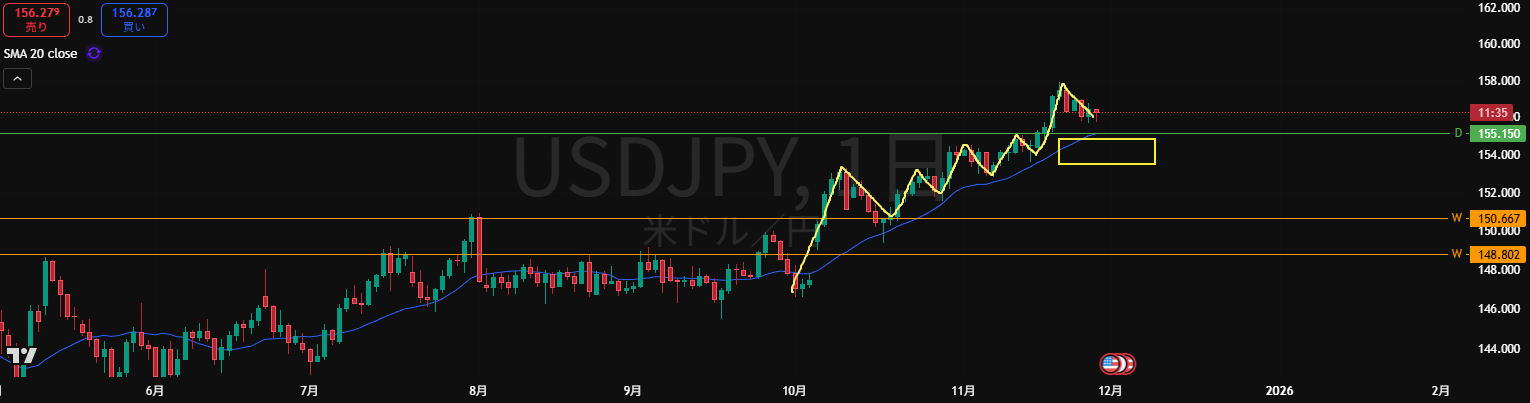 ・水色水平線は押し目買いライン。MAは上向きで買い支えとして機能しやすい