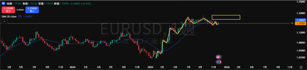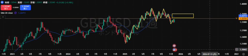 ・オレンジの水平線が戻り売りライン。MAは下向きで売り抑えとして機能しやすい