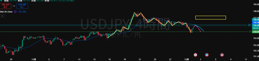 ・日足レベルの押し目買いの上昇リスクを考慮しながら、4H足でMAにもしっかり押さえられてくるようなら売りで検討していく。