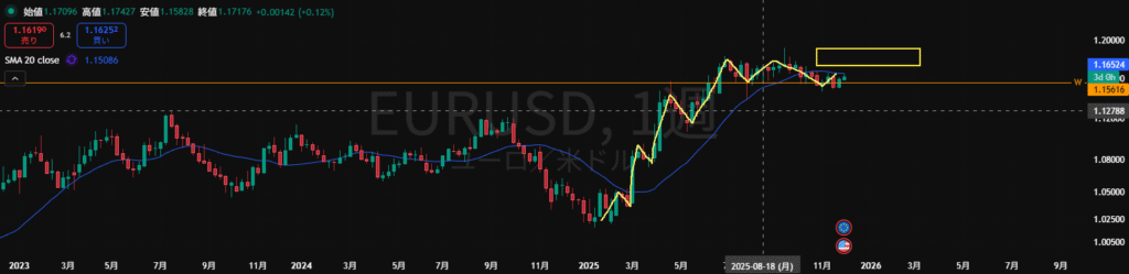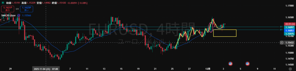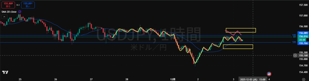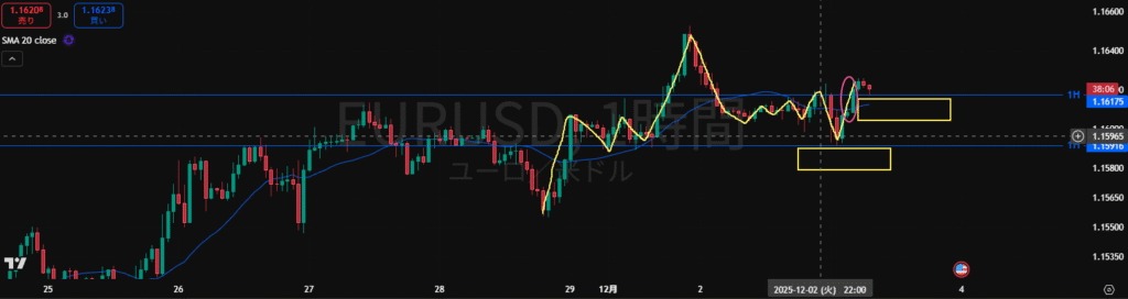 ・日足がどちらのダウで視るかで目線が変わってしまうので難しいところ。4H足的にも上下どちらにも視えるのでもう少し様子を視たいところ