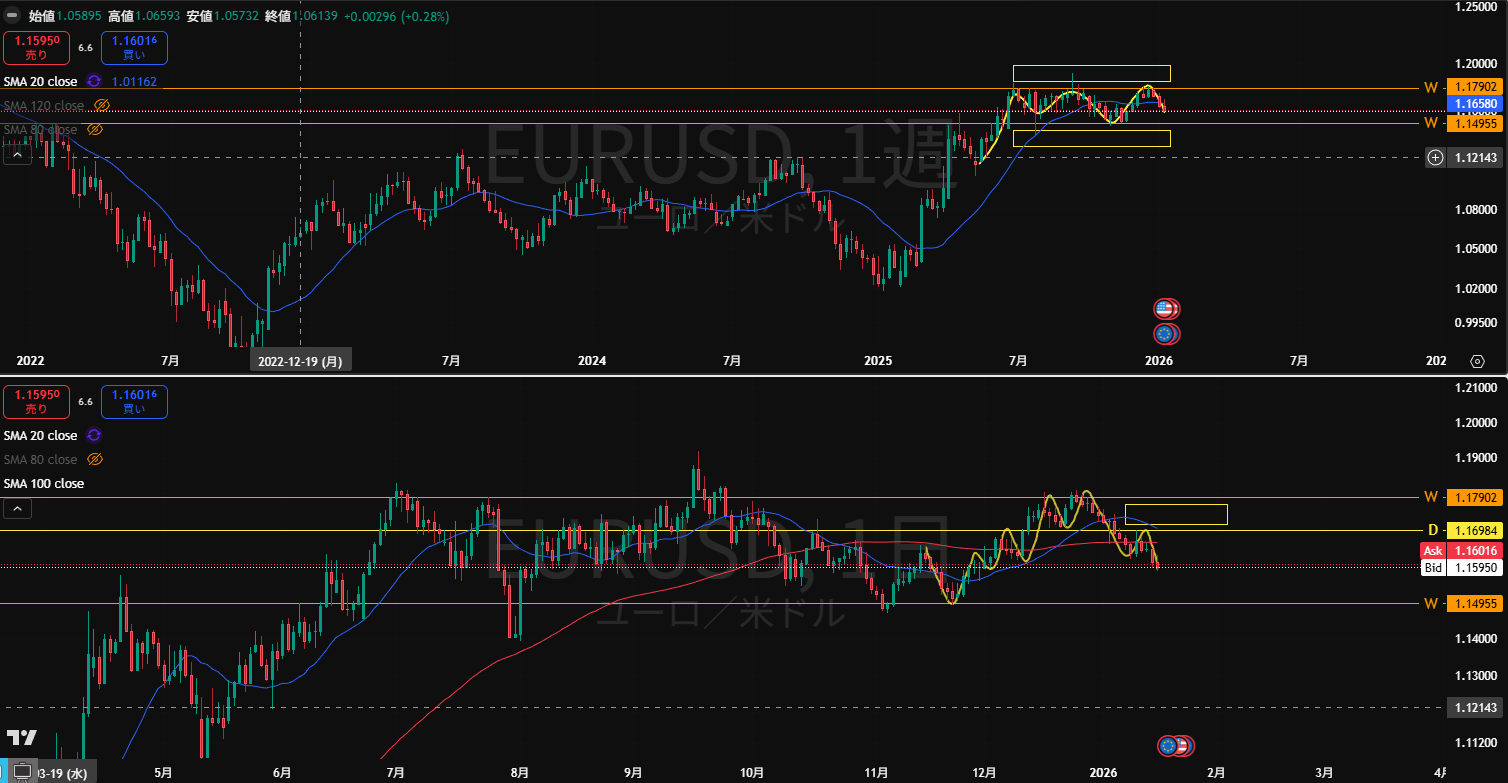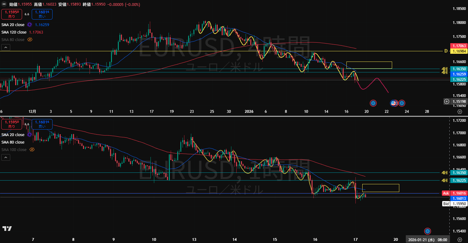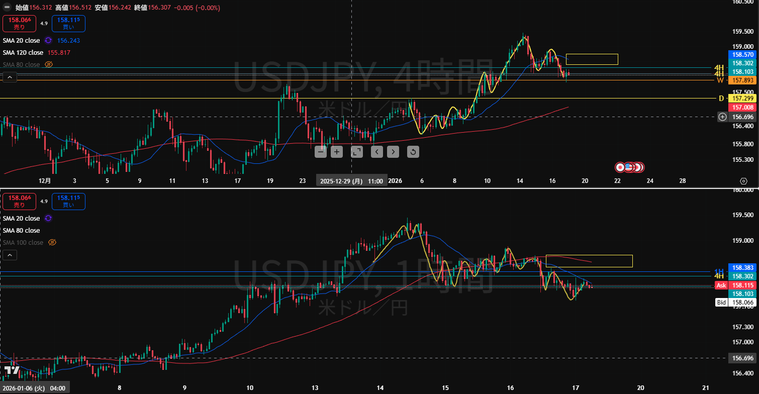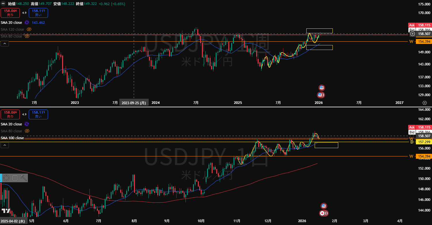 ・もう1月も2/3が終わる。月末まで仕事が込み合ってて忙しいけど、チャートのチェック忘れずにやろう