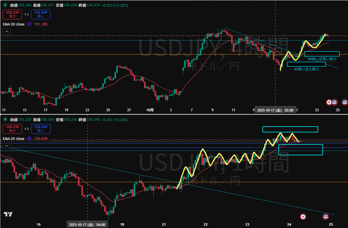 ・下位足(1Hや15M)でエントリーするときは、エントリー直前に必ず4Hの波の状況を確認すること