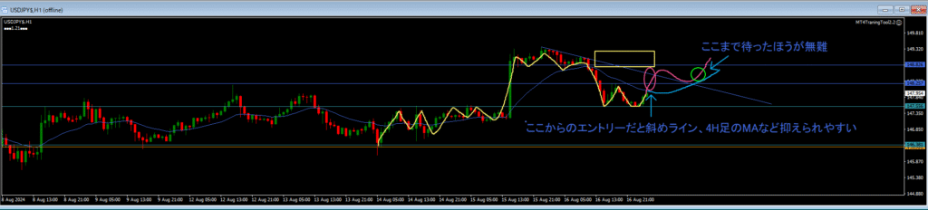 ・各時間足のMAの向きを考えることでリスクが見える。