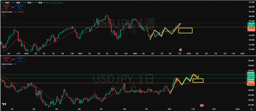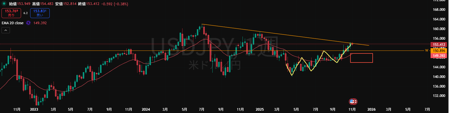 ・週足の斜めライン、引いている人だれもいなかったなぁ。週足のリスクはそこまで気にしなくていいみたい。
