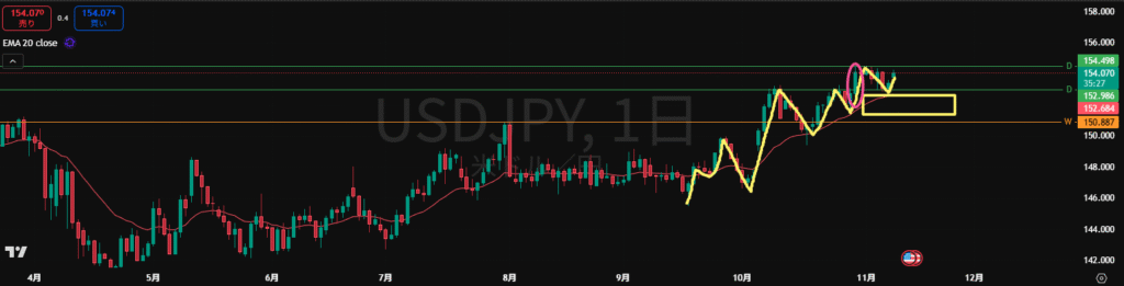 ・オレンジのラインは押し目買いライン。MAも買い支えとして機能しやすい状況