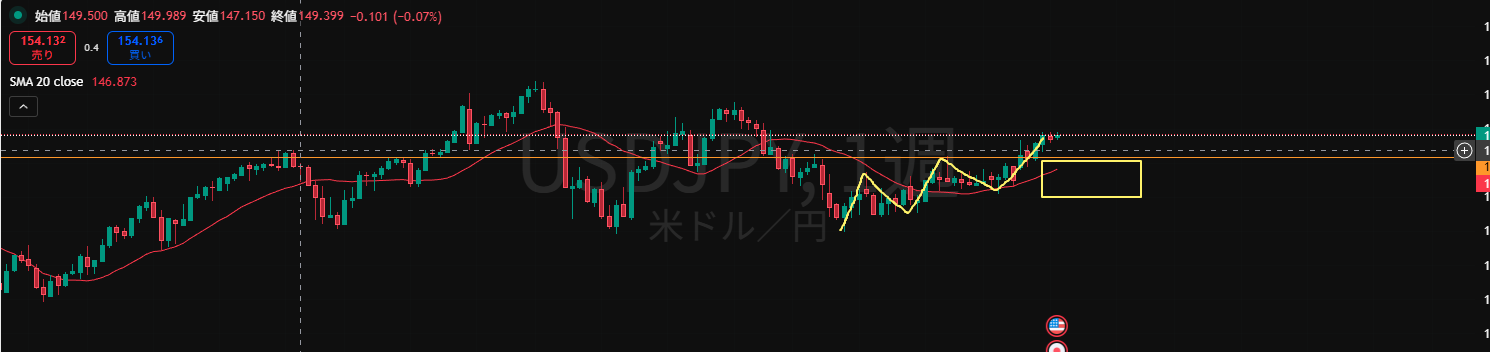 ・オレンジのラインは押し目買いライン。MAも買い支えとして機能しやすい状況