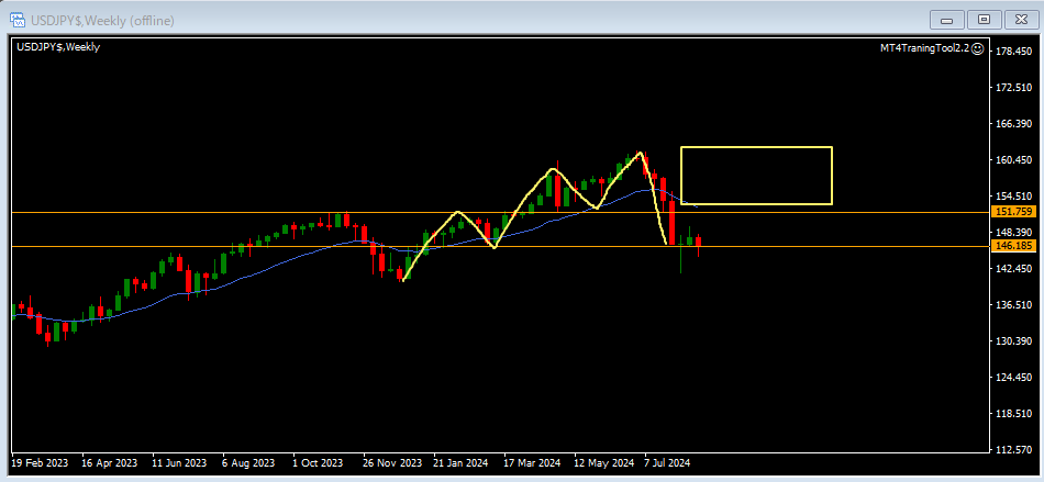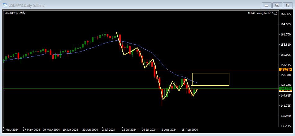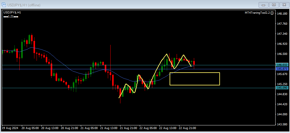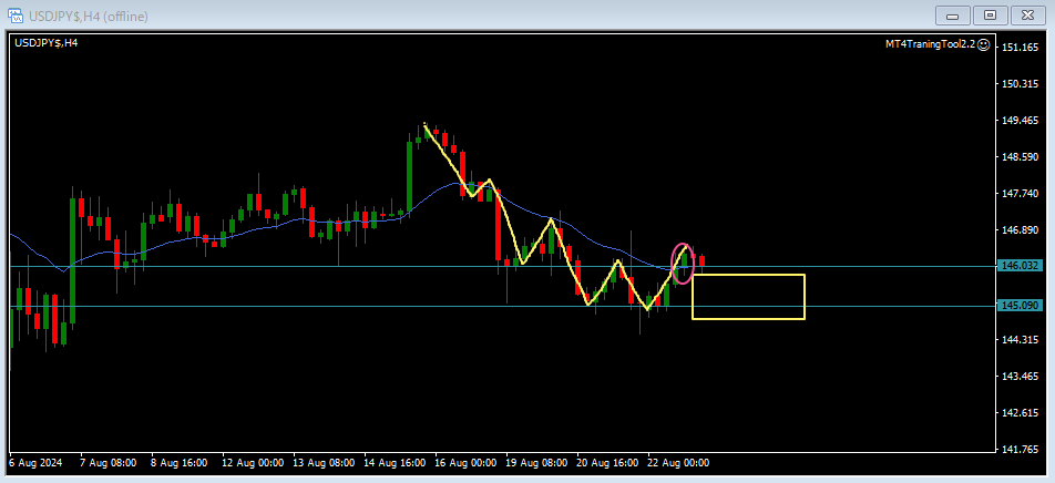 ・上の水平線オレンジ)は戻り売りライン。MAも下抜いて戻してきたときには売り抑えとして機能しやすい
