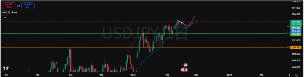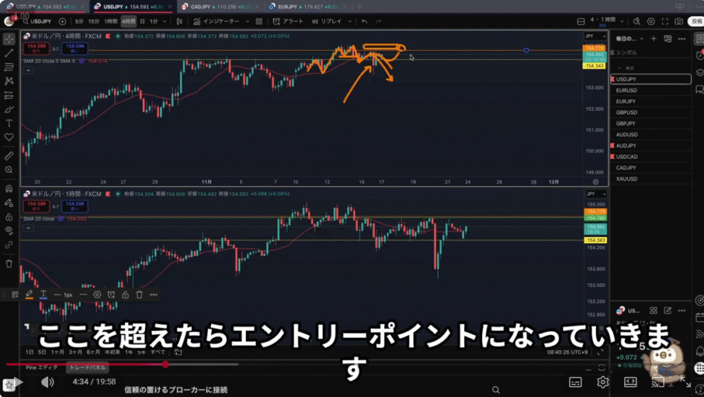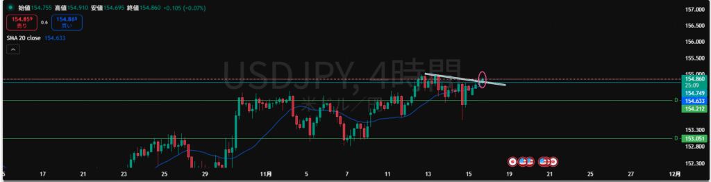 4Hで攻防ラインを上抜いてきた。確かに日足で見るとまだ早いのがわかる。