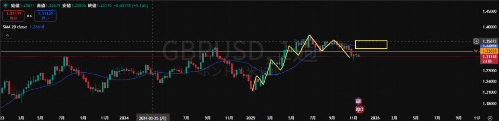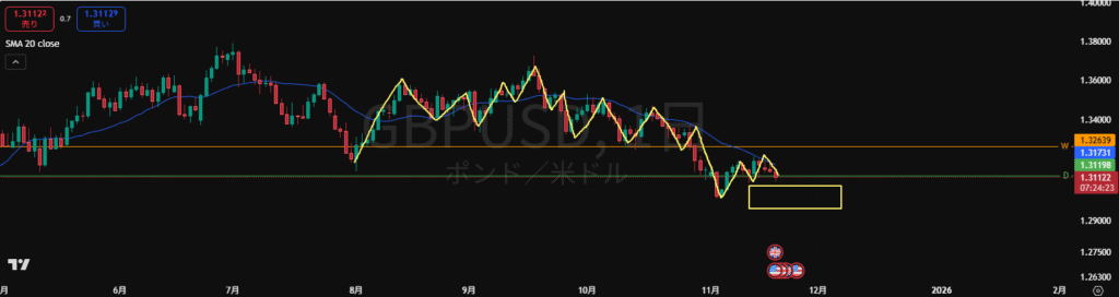 ・安値を割って下降の波の途中。MAも下抜いたので売り抑えとして機能しやすい。