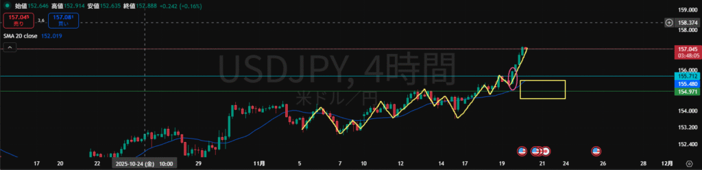高値を更新してきたので4H足ではトレンドを追いかける