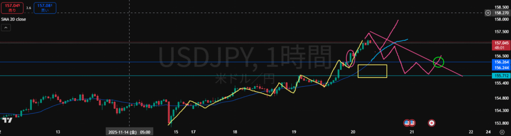 ・日足全戻しからの下落。まだ下落する可能性もあるが、戻してきた場合は4H戻り売りラインまでしっかり戻して1HMAを下抜いてくるまで待ってからの戻り売りで検討。