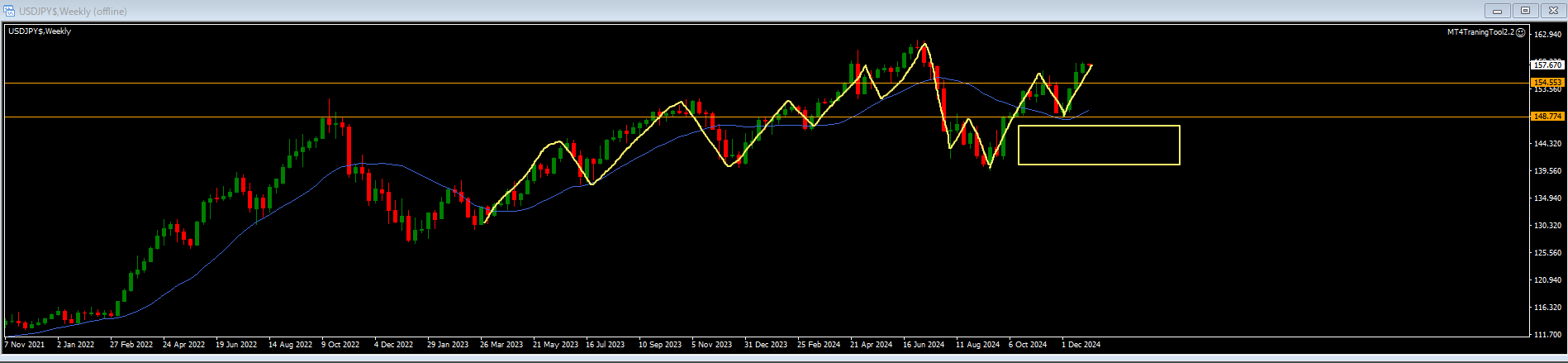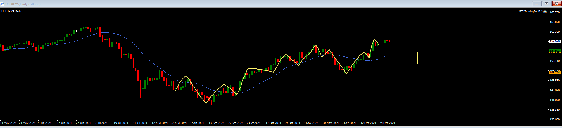 ・オレンジラインは押し目買いライン。下には押し目買い勢力がいる。MAは上向きで買い支えられやすい状況